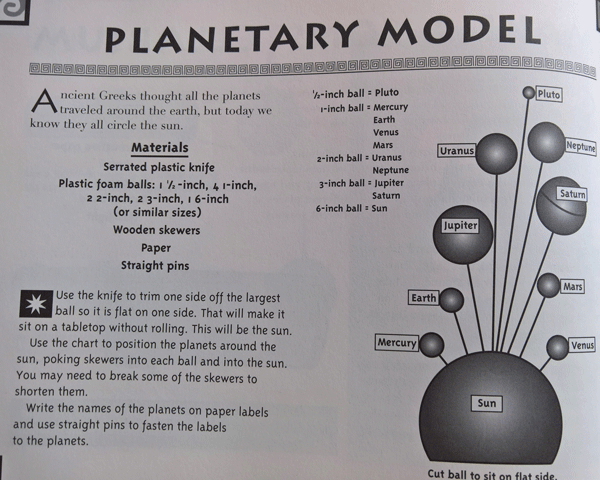 They include a variety of ideas including dressing up Greek, eating Greek food, The Arts (such as Aesop's Fables) and sculpture, learning such as making a constellarium and a planetary model and solar system model (see images below) as well as a simple pulley.