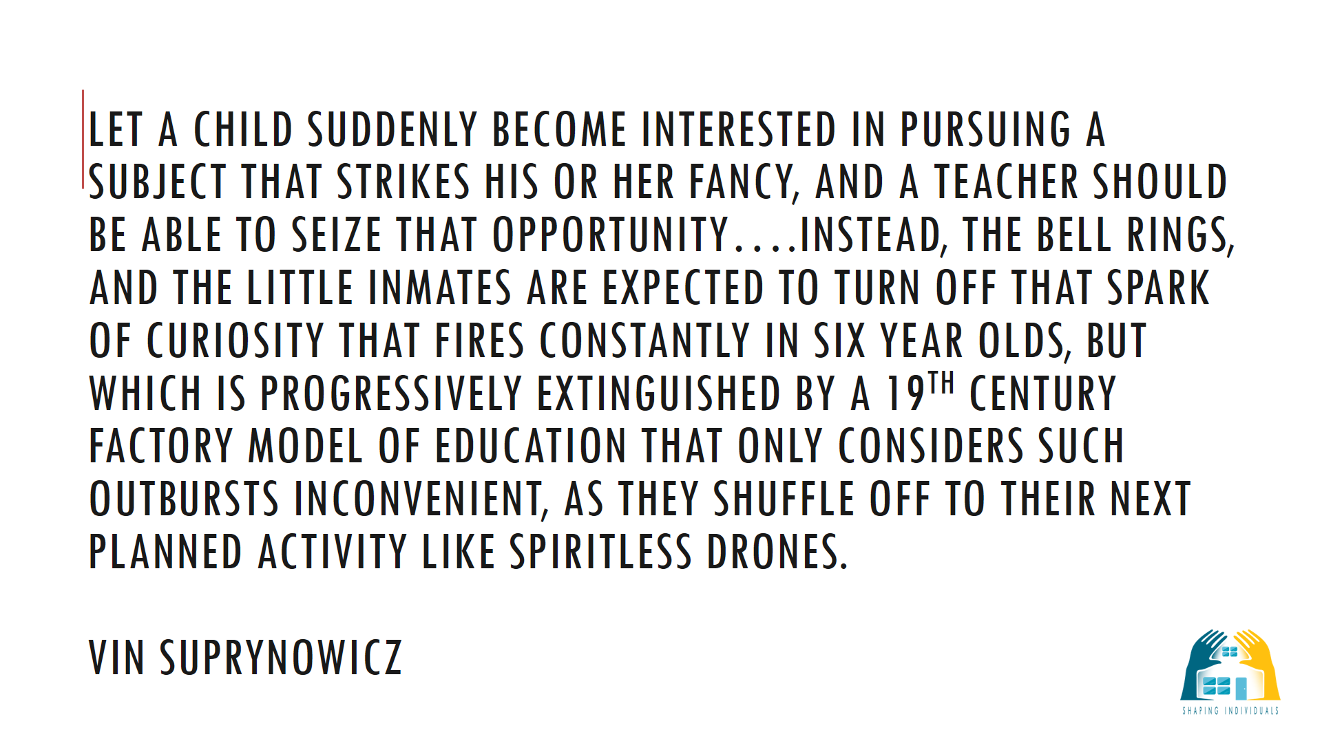 Self directed education will not thrive in an atmosphere where the schedule or curriculum is the master.