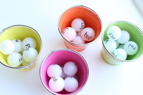 For years, we played the "pocket game" where the children would put the flashcard in the correct A-Z pocket. These pockets were made of material with the letter on the front of the pocket and they were strung up with a rope at an appropriate height along a wall in our home. We had competitions to finish their pile of flashcards in a certain amount of time. They would read the word and then place it in the pocket. They could also read it, spell it and then place it in the pocket.